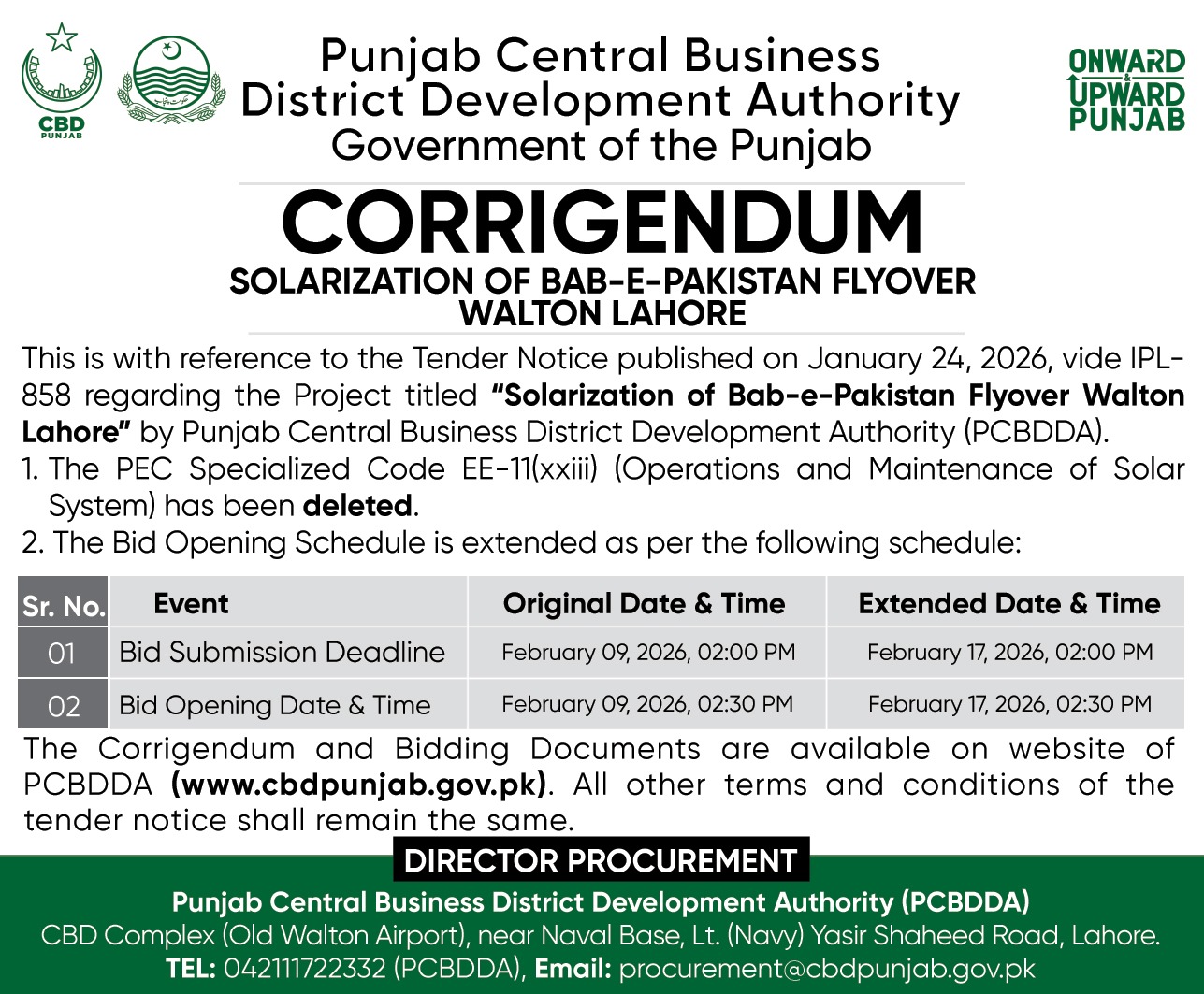 Tender Notice - Solarization of Bab e Pakistan Flyover Walton Lahore |