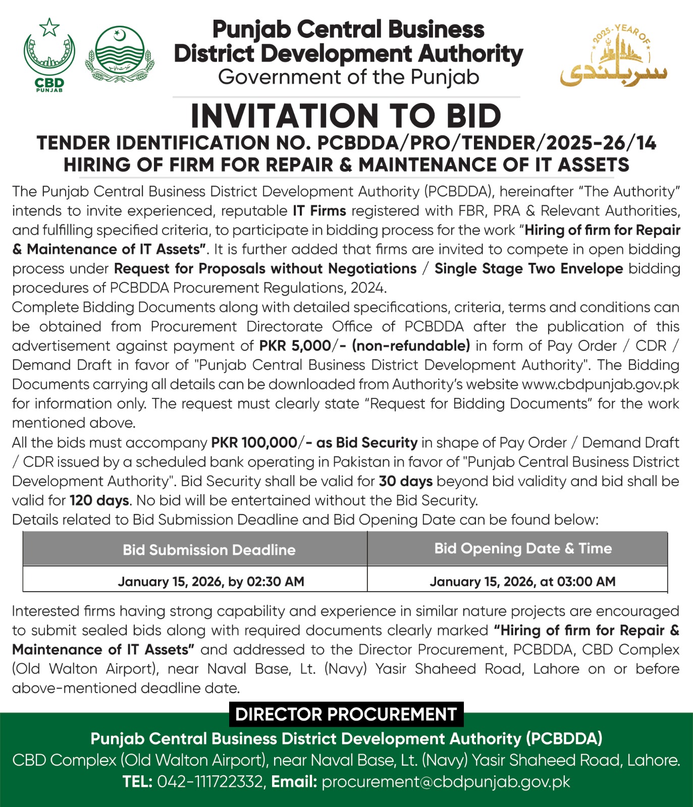 Bidding Document - Hiring of firm for Branding of CBD Complex |