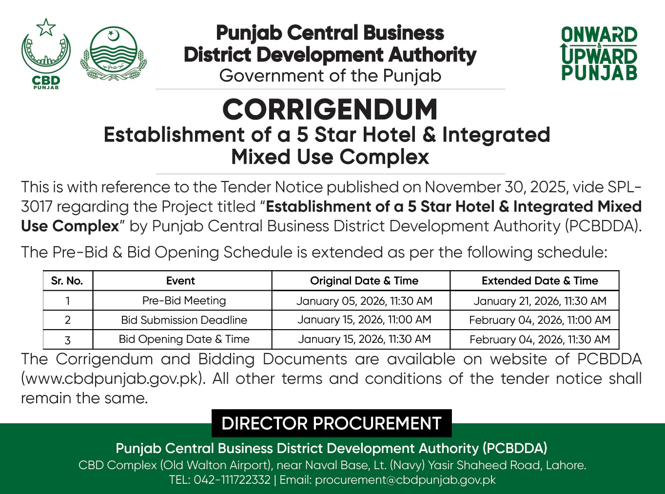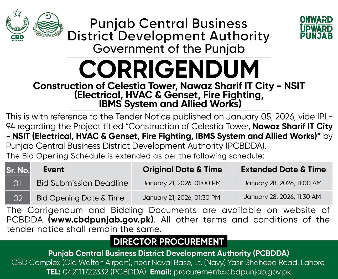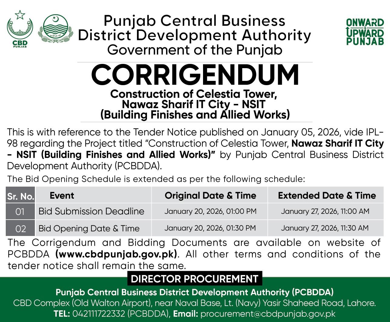 Corrigendum - Parking Plaza & Office Complex at CBD Quaid (Building Finishes & Allied Works) |